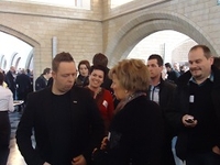 Een propvolle zaal, flitsende camera's, talloze televisieploegen, toegangsbewaking en controle van onze badges.